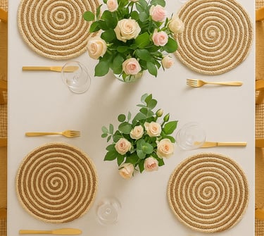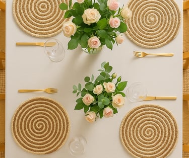 Add texture and warmth to your dining setup. These neutral jute placemats make your meals feel cozy, even on the busiest weekday. Add texture to your dining table with these natural beige braided jute placemats. Measuring 35 cm in diameter, they're perfect for both everyday meals and special occasions, enhancing the rustic elegance of your table setting.