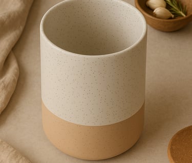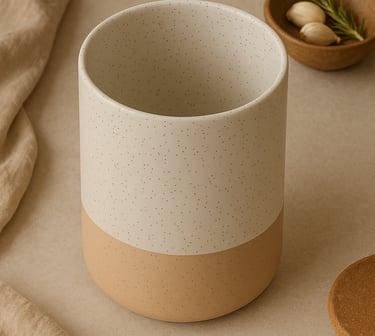 A clean, matte ceramic holder that keeps your spoons, whisks, and spatulas looking chic and within reach. It doubles as decor with its handcrafted feel. This cream-colored ceramic utensil holder is both stylish and functional. Made from high-temperature-fired ceramic, it offers durability and a stable base for your kitchen tools. Its minimalist design complements neutral-toned kitchens, adding a touch of elegance to your countertop.