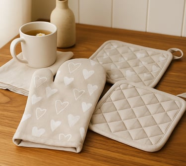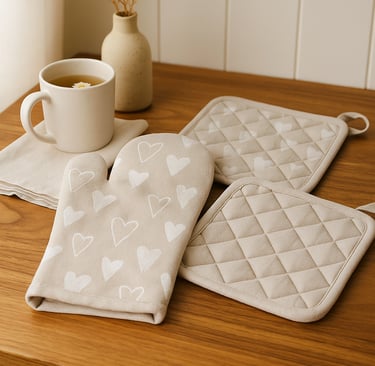 Function meets fashion here. These cushioned mitts in neutral hues protect your hands while complementing your kitchen palette. These oven mitts are designed to withstand high heat, making them ideal for baking, grilling, and cooking. The neutral color blends seamlessly with beige-themed kitchens.